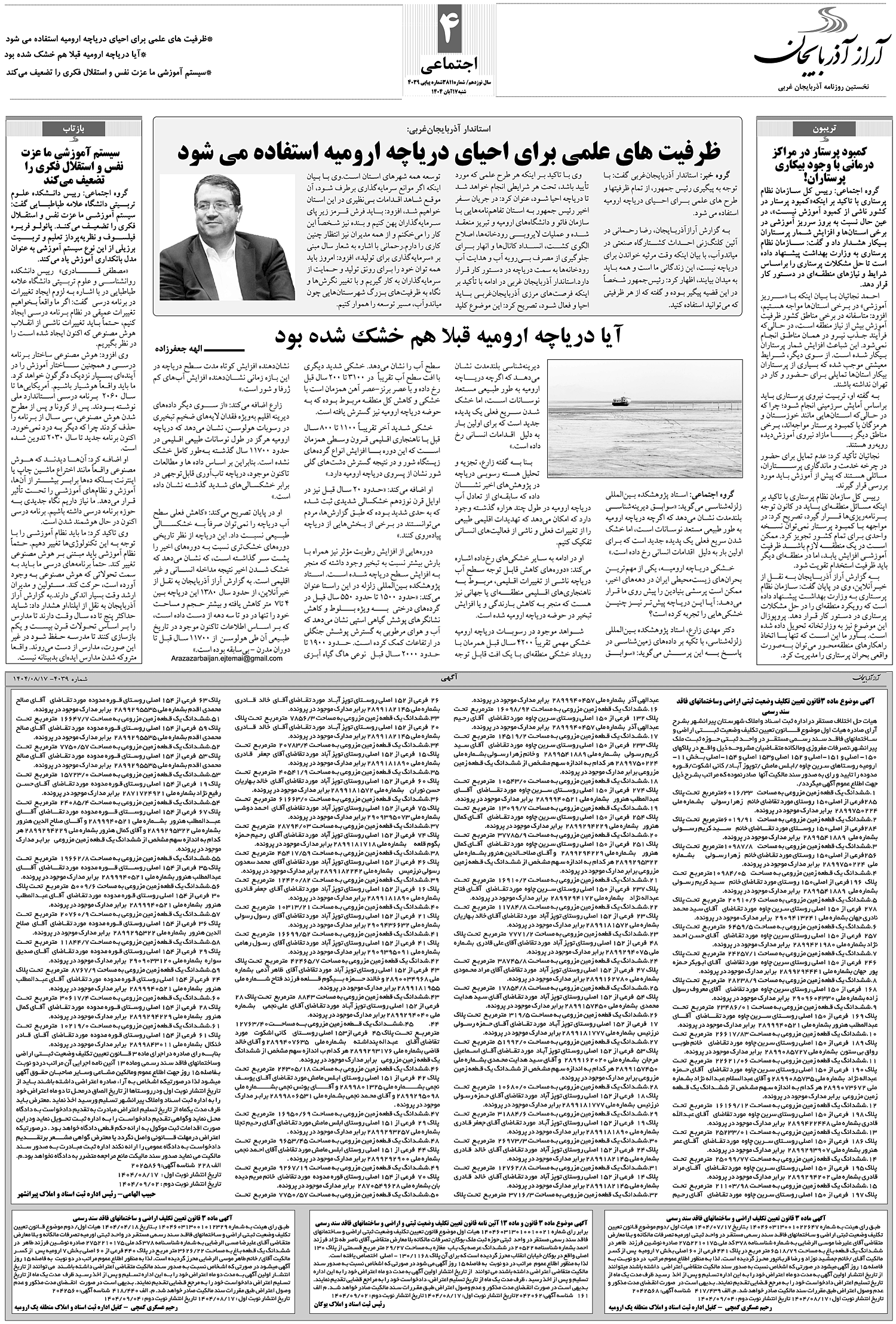ظرفيت هاي علمي براي احياي درياچه اروميه استفاده مي شود