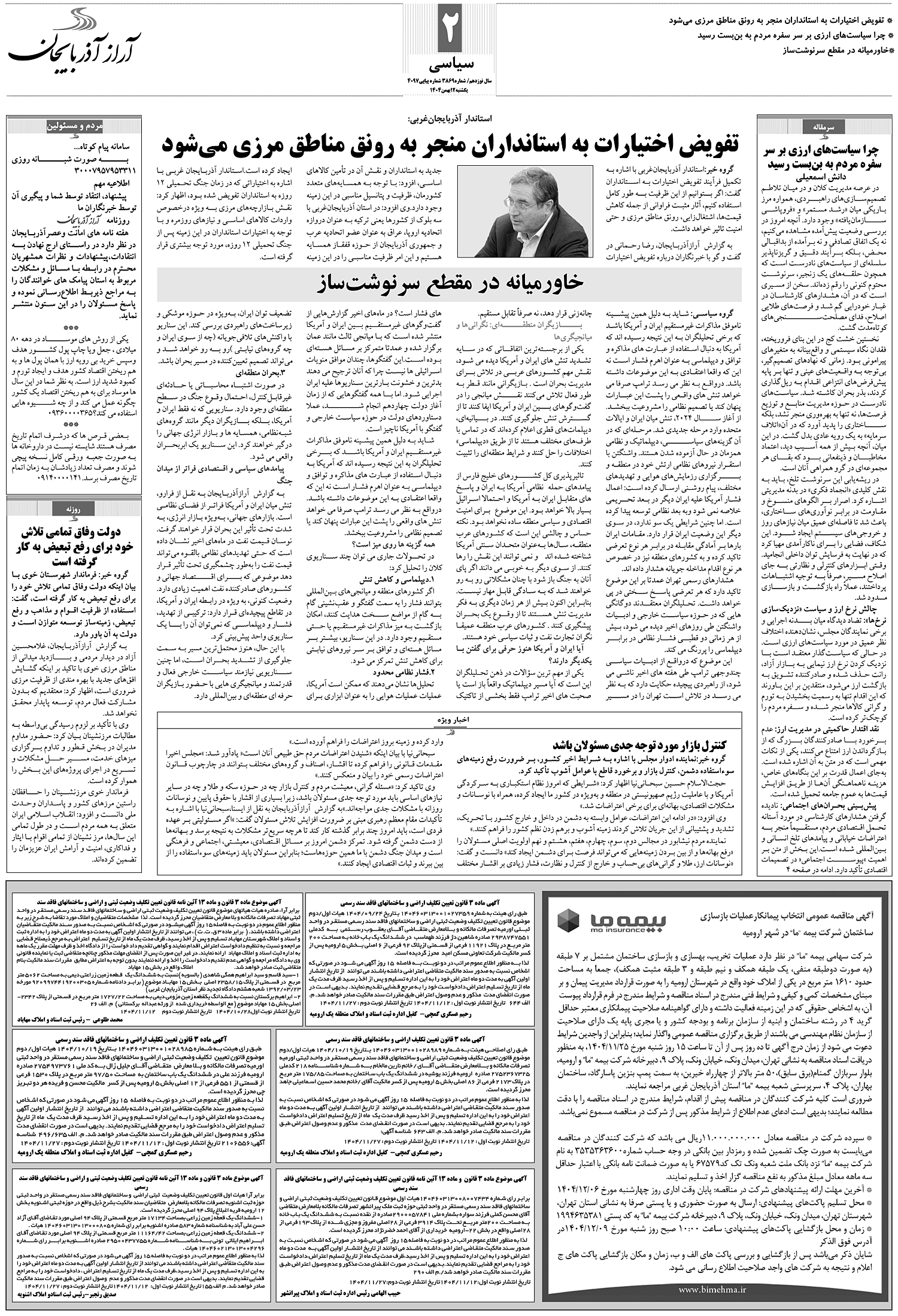 گروه خبر: رئيس سازمان جهاد کشاورزي آذربايجانغربي، از تشديد رصد و پايش مستمر بازار کالاهاي اساسي در آستانه نزديک شدن به دو ايام مهم مصرفي سال شامل عيد نوروز و ماه مبارک رمضان، خبر داد.