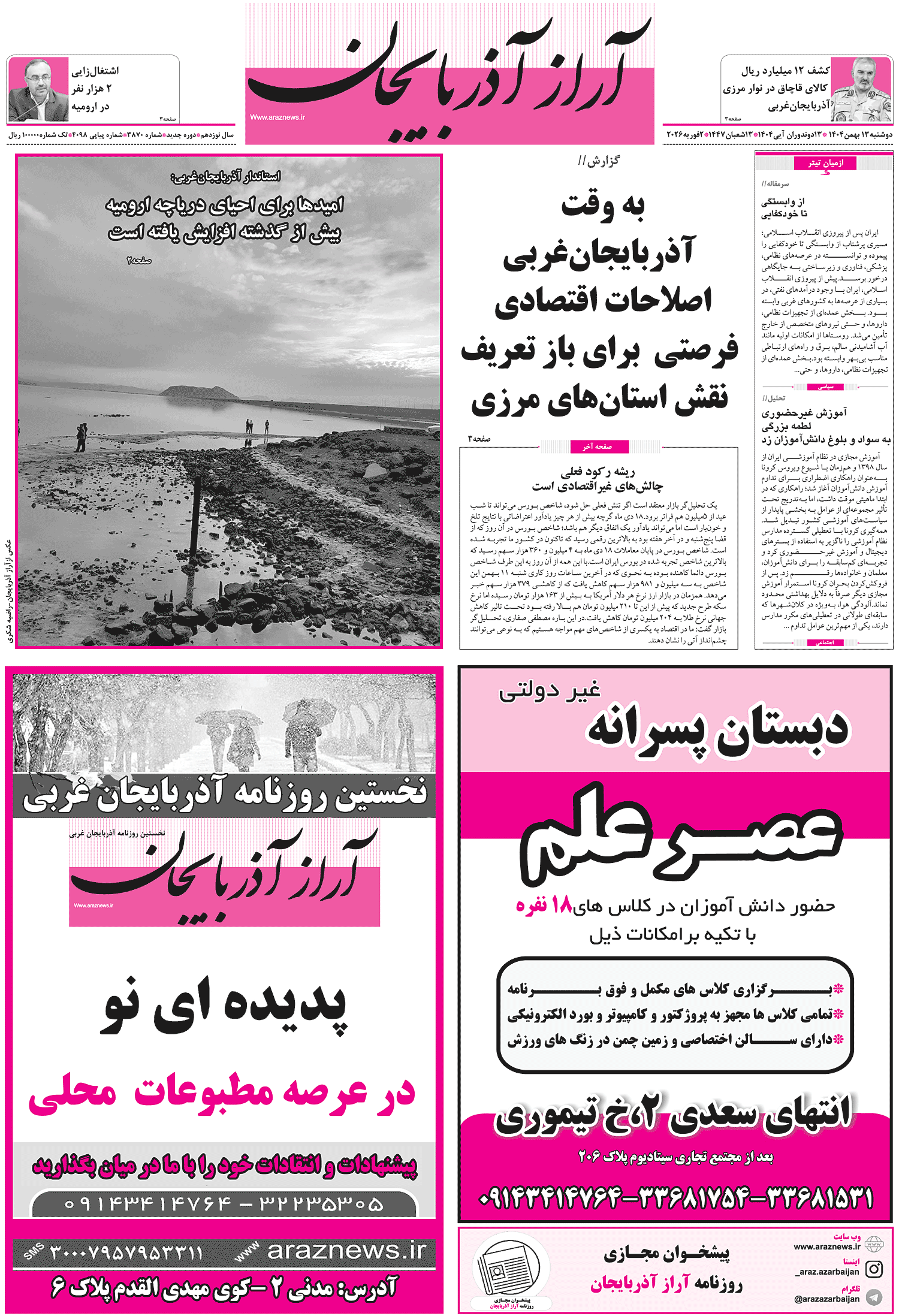ساز و کار تامين منابع پايدار براي احياي درياچه اروميه تعيين شود