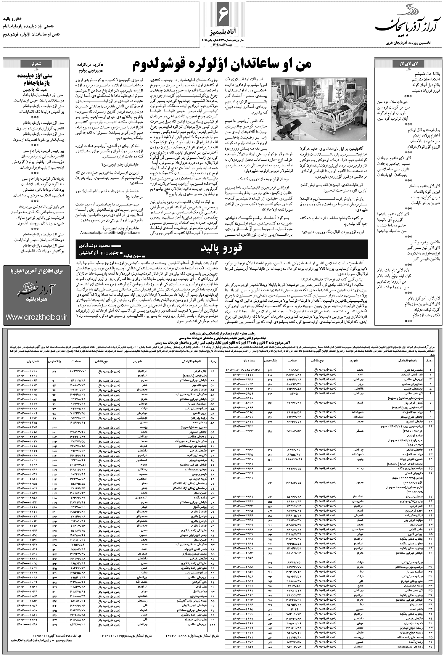 آناديليميز: بو ايل بايرامدان بري حاليم هرگون خارابلاشيردي. ياي باشلاناندان اؤلومله گولهشيرديم.