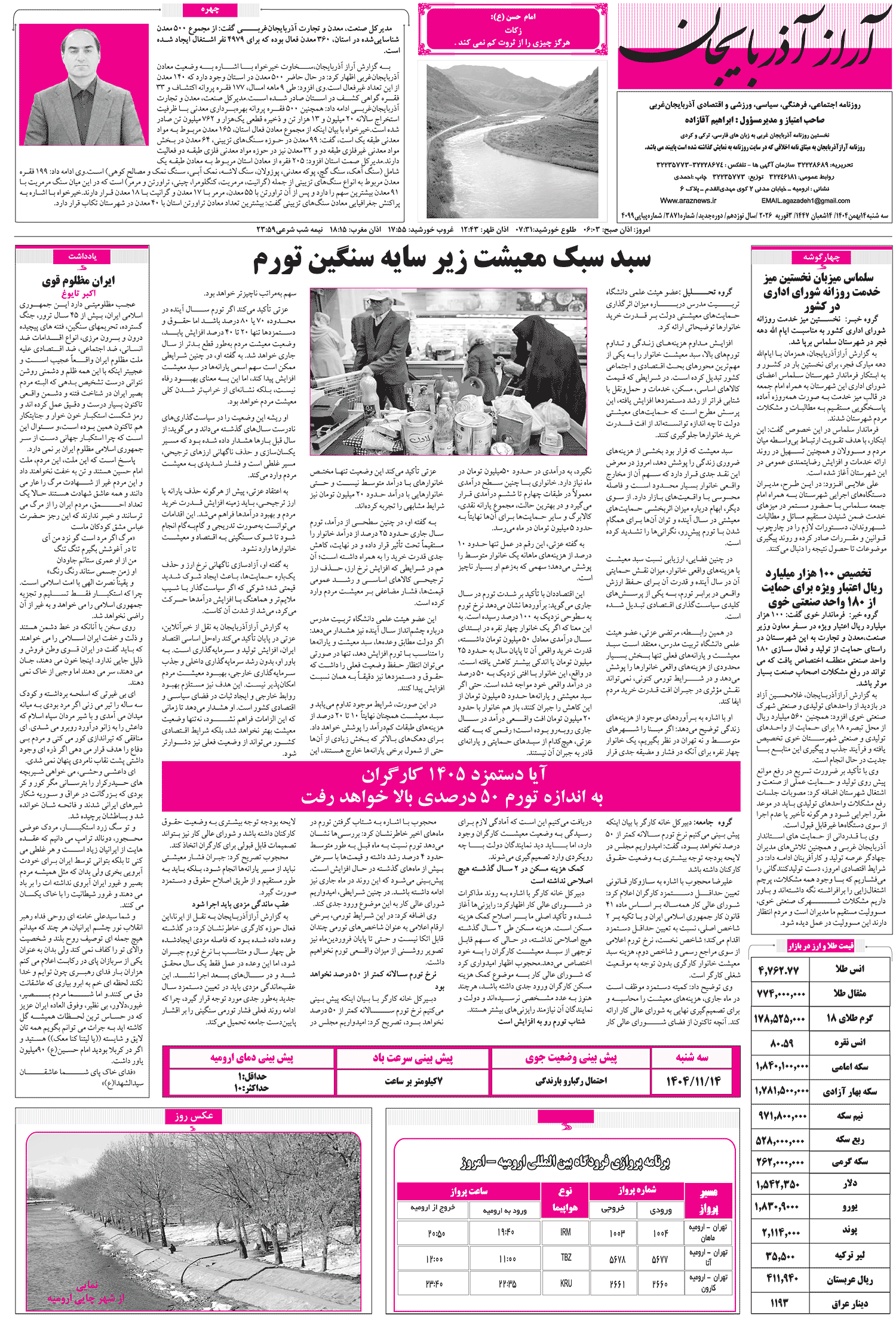 آرازآذربایجان-آذربایجان غربی کارشناس پیشبینی اداره کل هواشناسی آذربایجان غربی گفت: بارش متناوب باران و برف همراه با وزش باد و احتمال آبگرفتگی معابر تا چهارشنبه در استان ادامه خواهد داشت.